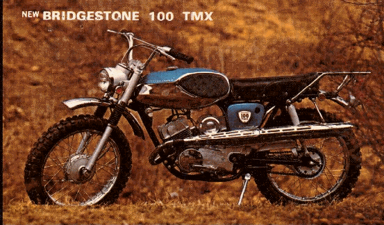 Introduced in 1969 the TMX was a 100cc single cylinder rotary valve motor producing 11 hp @7500 rpm weighing 186 lbs. and featuring a quick-change dual rear sprocket and offering 2 colors candy blue and red |
